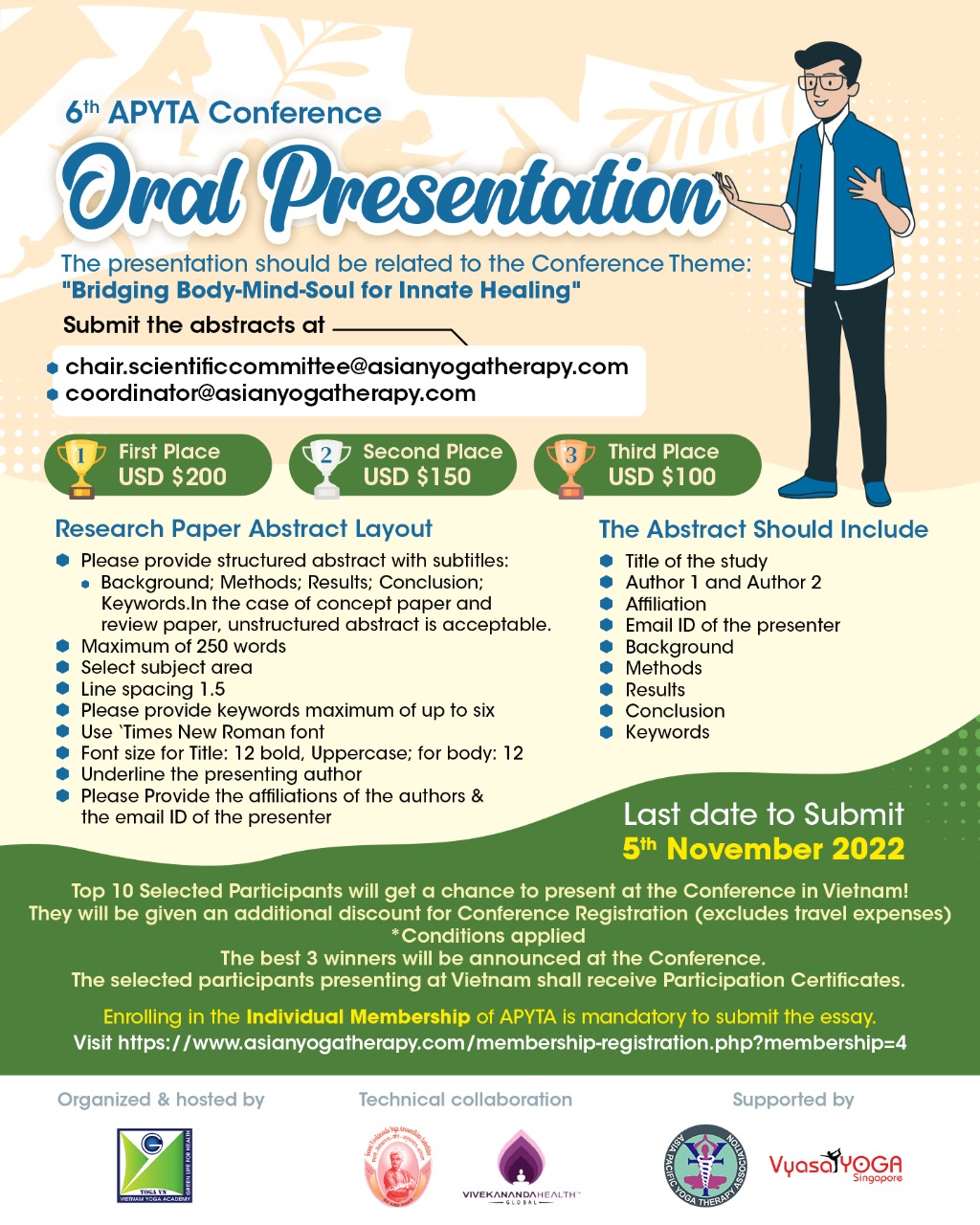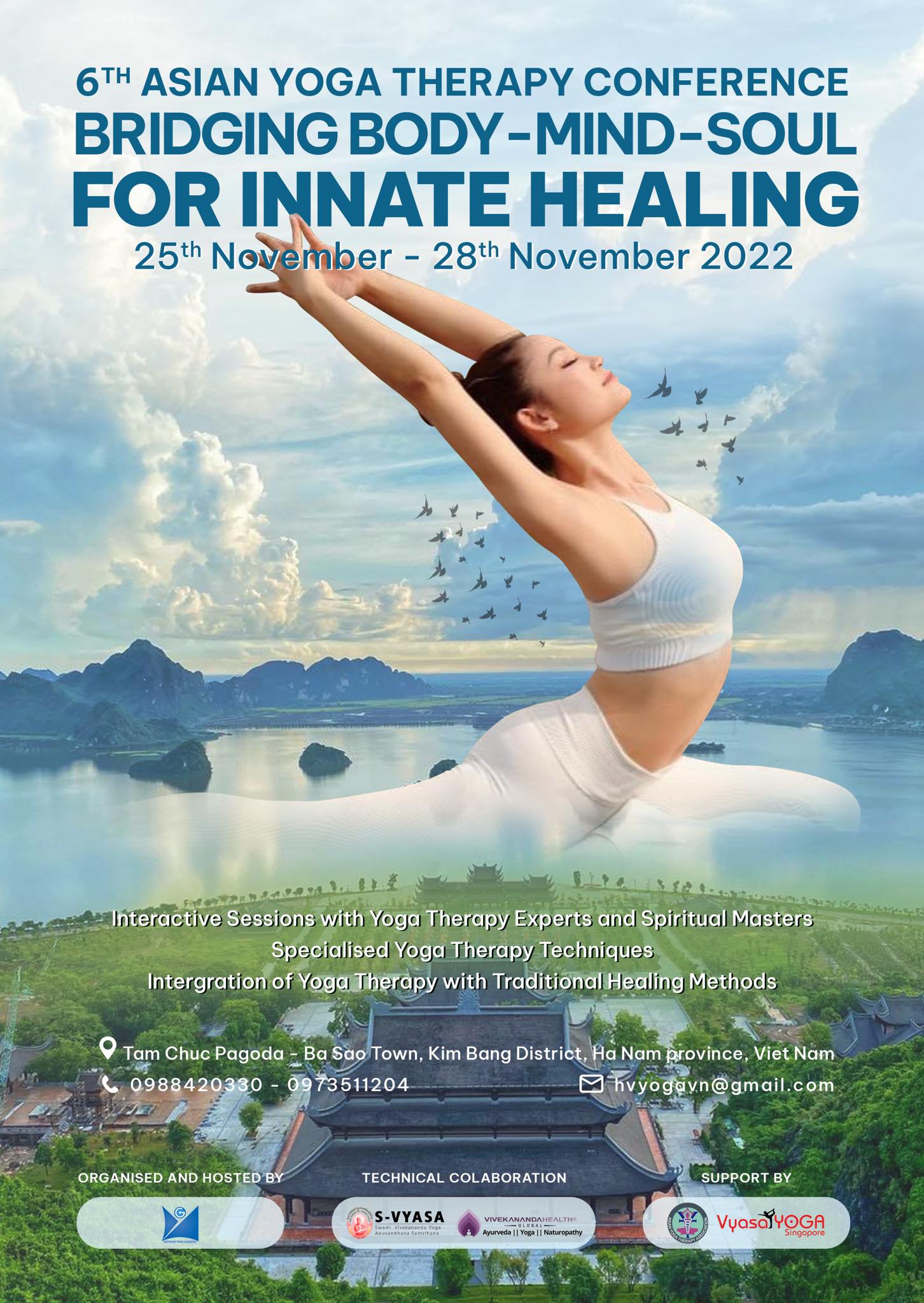 The 6th Asian Pacific Yoga Therapy Association (APYTA) Conference will be held at the 'land of the blue dragon' Hanoi, Vietnam between November 26th- 27th, 2022! New dimensions to propagate Yoga therapy by “Bridging Body-Mind-Soul for Innate Healing”. Jointly organised by Asian Pacific Yoga Therapy Association and Vietnam Yoga Academy. This will be a physical Conference presenting World-class experts from all around the globe in the field of Medical & Yoga Industry.